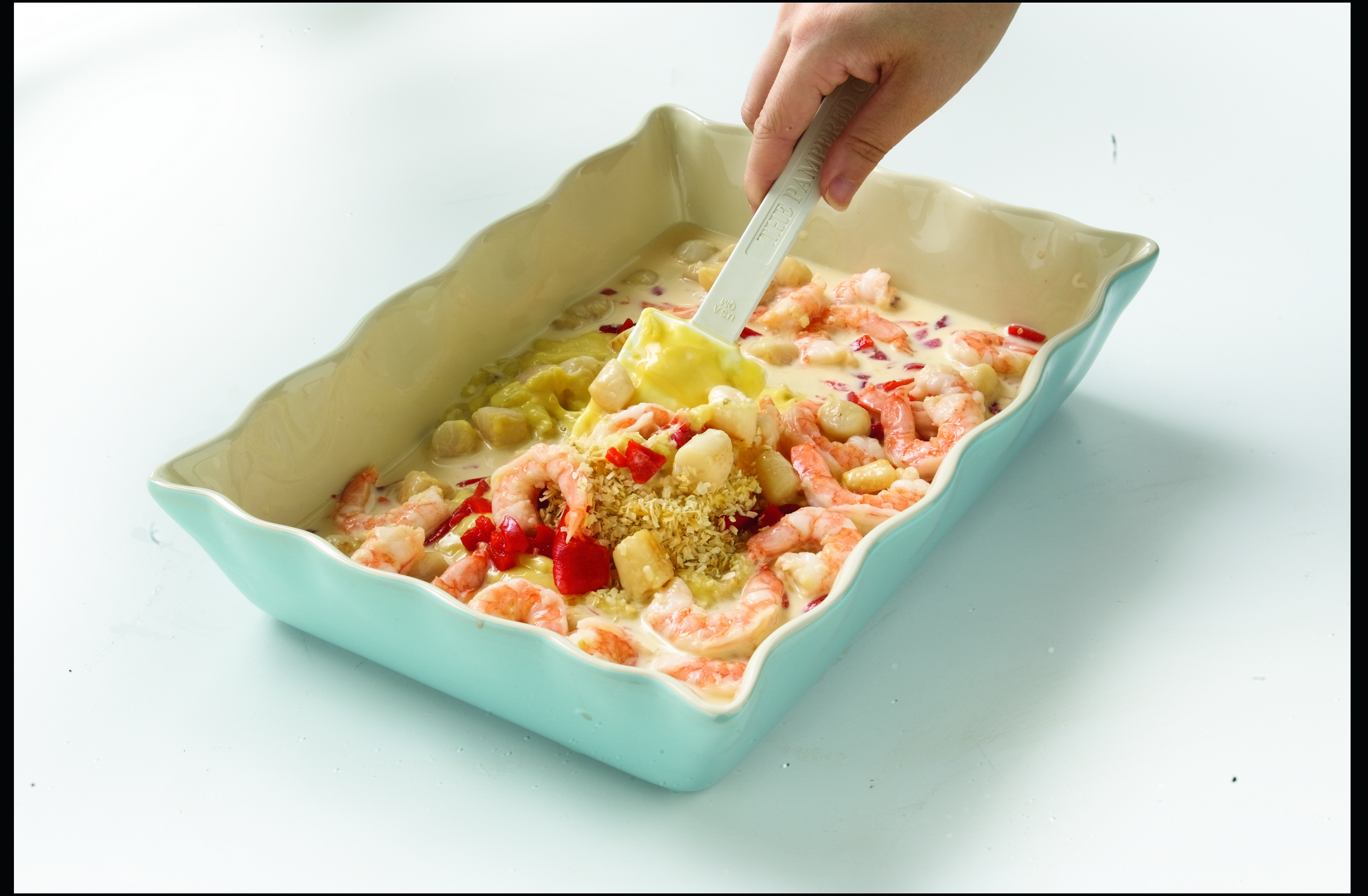 This seafood casserole is full of shrimp and scallops so it's a seafood lover's delight.